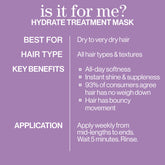 Rich, hydrating treatment hair mask provides deep moisture and all-day softness.